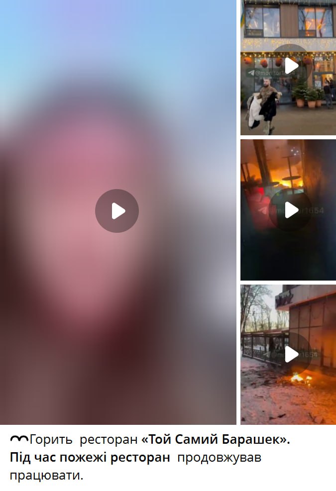 Сильный пожар в саду Шевченко. Горит ресторан грузинской кухни «Той самий барашек». Прилетов не было!