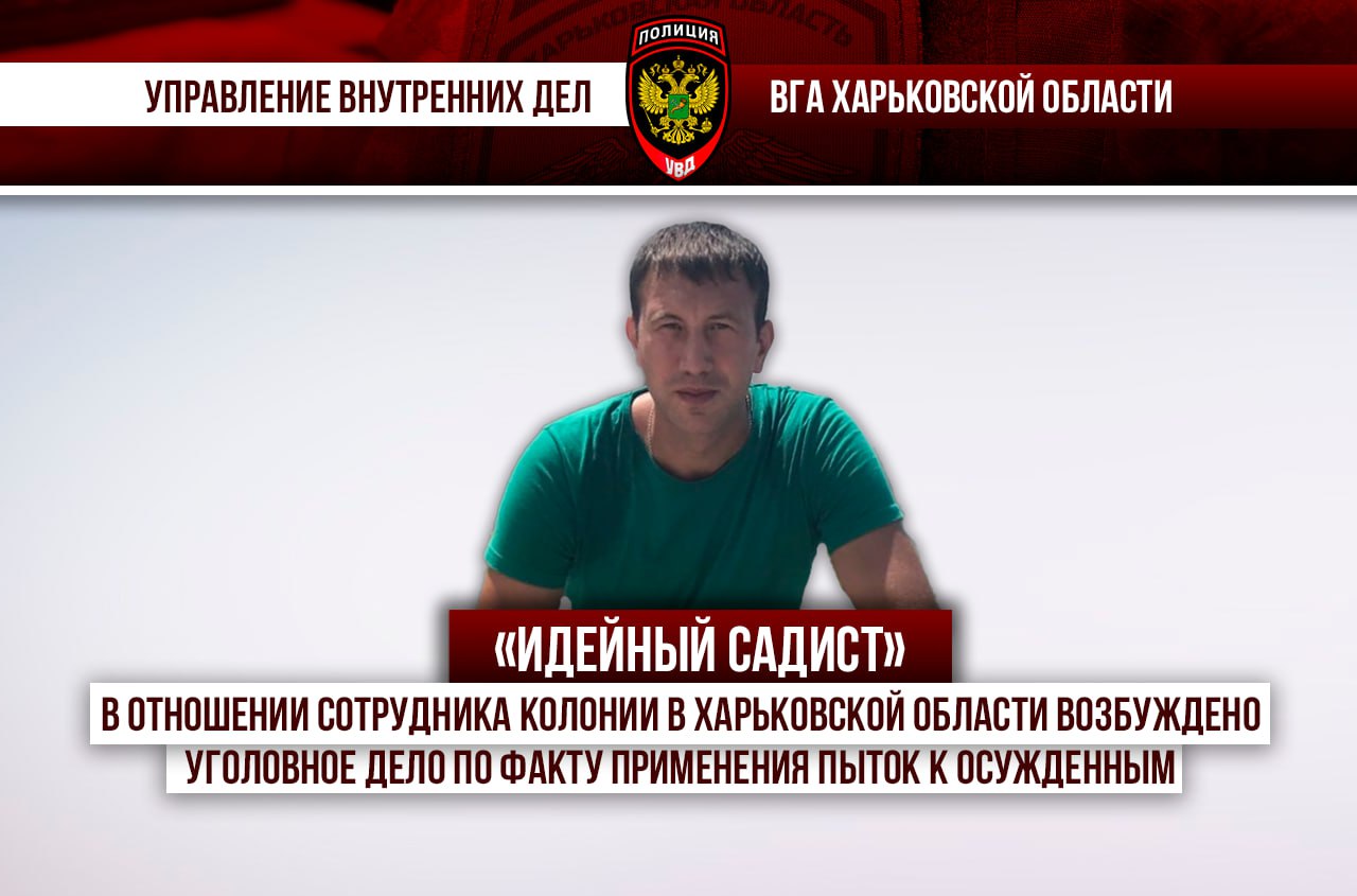 © Управлением внутренних дел ВГА Харьковской области возбуждено уголовное дело в отношении так называемого «оперативного сотрудника» Темновской исправительной колонии № 100 Витанова Михаила Евгеньевича, 23 января 1987 года рождения.