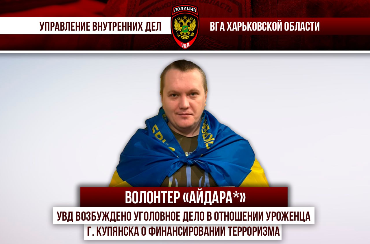Волонтер "Айдара*": УВД возбуждено уголовное дело в отношении уроженца г. Купянска о финансировании терроризма