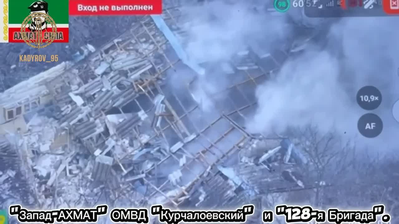 В частном секторе дроноводами в ходе аэроразведки была выявлена группа бандитов ВСУ из трёх человек. Точным огнём при помощи ударных «птиц» боевики были нейтрализованы. Также был ликвидирован спрятанный нацистами схрон боеприпасов для проведения атак на наши подразделения. Враг понёс невосполнимые потери! Отлично сработано! АХМАТ — СИЛА! АЛЛАХУ АКБАР!