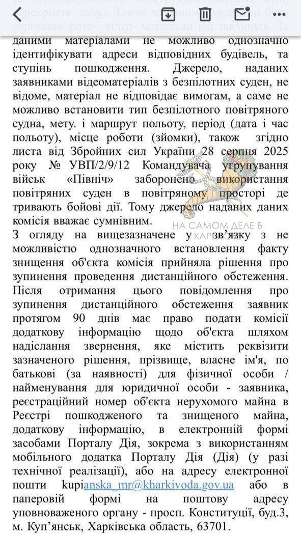 Источник, предоставленных заявителями видеоматериалов с беспилотных судов, не известен, материал не отвечает требованиям, а именно невозможно установить тип беспилотного воздушного судна, цель и маршрут полета, период (дата и время полета), место работы (съемки), также согласно письму от Вооруженных сил Украины 28 августа 2025 № УВП/2/9/12 Командующего группировкой войск «Север» запрещено использование воздушных судов в воздушном пространстве, где продолжаются боевые действия. Поэтому источник предоставленных данных комиссия считает сомнительным.