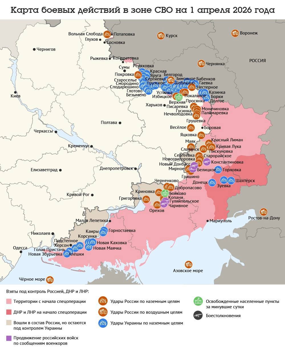 Карта боевых действий в зоне СВО на 1 апреля 2026 года