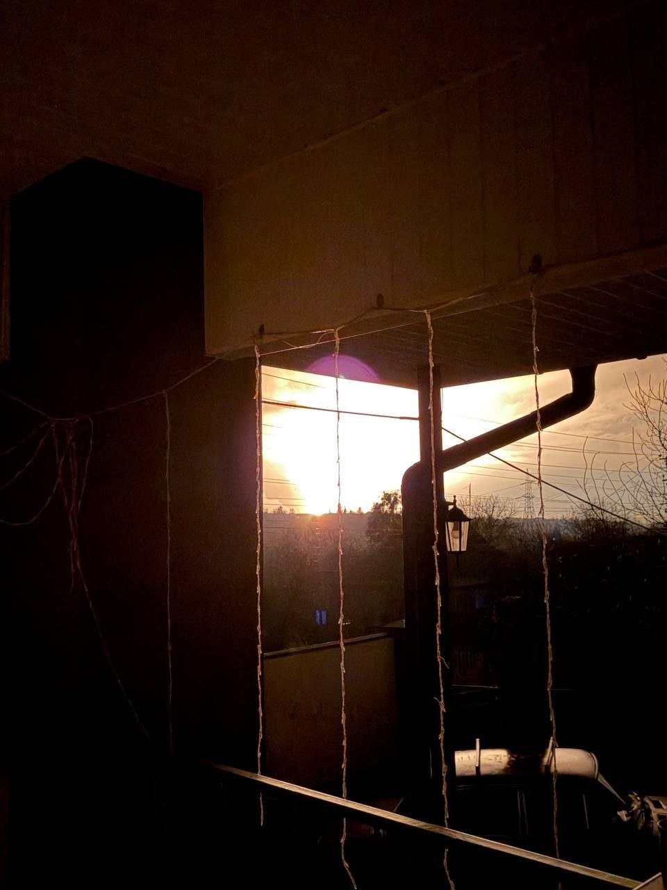 Зарево от ночных ударов "Гераней" по нефтебазе в Мерефе Харьковской области. Заявляется, что было поражено несколько резервуаров.