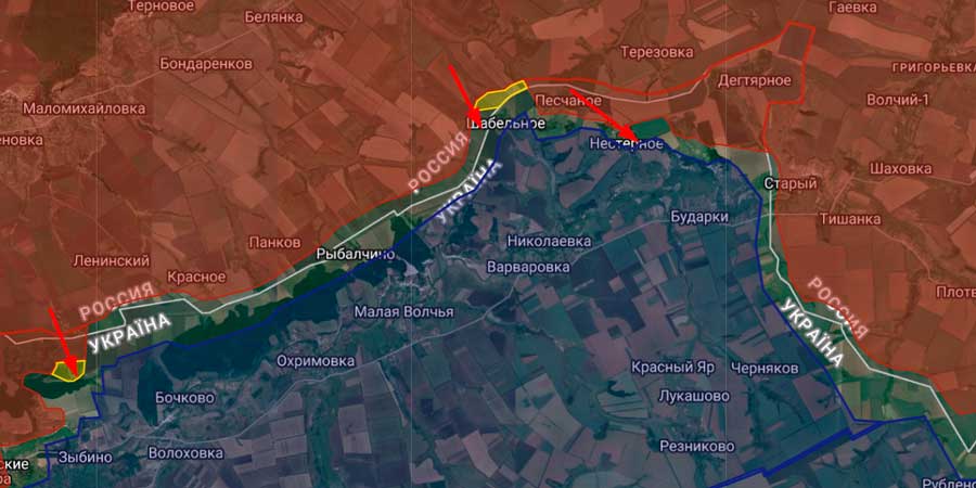 На северо-восточном участке наблюдается другая, но не менее важная динамика. Российские подразделения закрепились в лесополосе вдоль границы западнее Песчаного. Это не просто продвижение — это формирование новой линии контроля, от которой уже начато проникновение в Шабельное. Подобные «ползучие» заходы в населённые пункты через посадки и леса — характерный признак подготовки к последующему закреплению без лобовых штурмов.