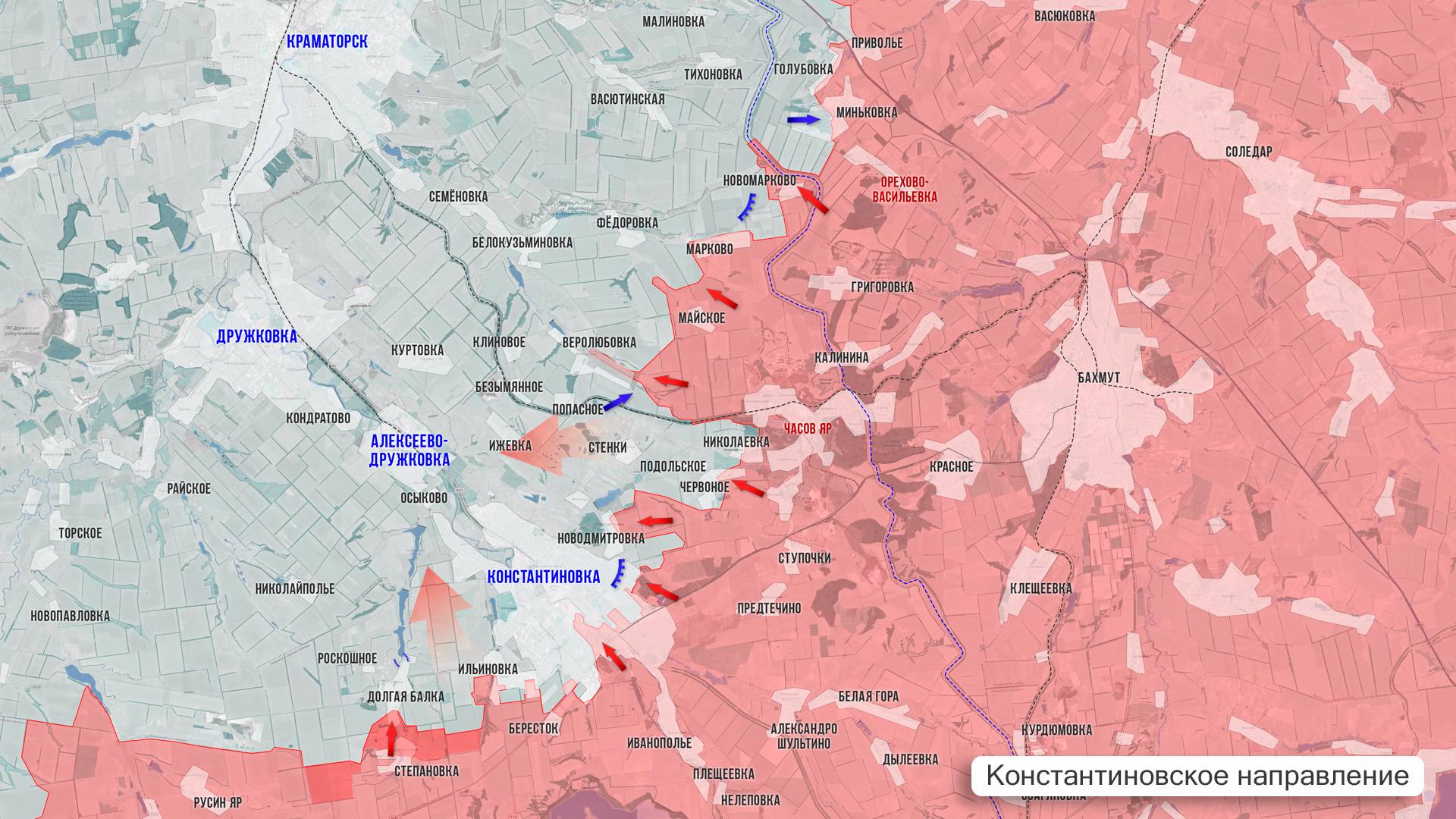 На Константиновском участке интенсивное сражение в сёлах к юго-западу от города – в Долгой Балке и Ильиновке. ВСУ ожесточённо бьются, а на территории Константиновки дронами пытаются замедлить продвижение наших войск. ВС РФ, в свою очередь, методично бьют по логистике противника и ПВД в городской черте. В районе Часов Яра ситуация стабильно тяжёлая, без изменений.