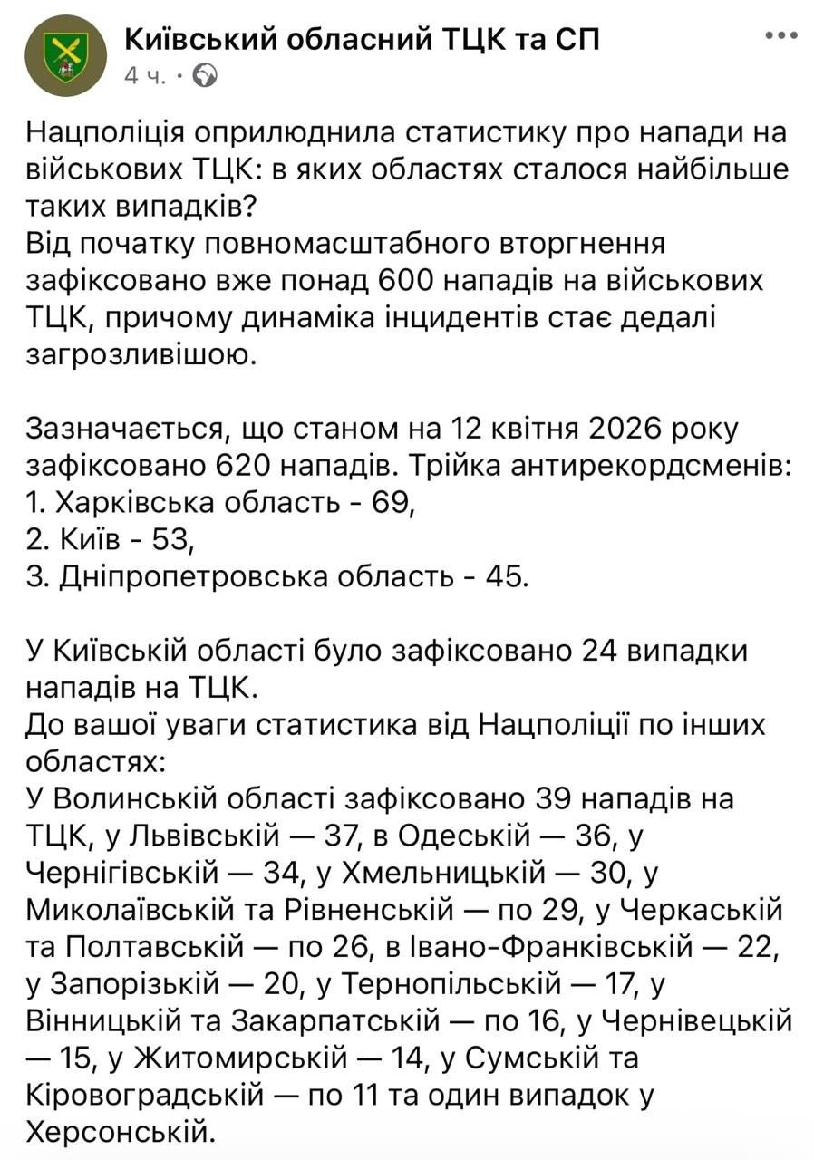 По состоянию на 12 апреля вна бывшей Украине зафиксировано 620 случаев силовой/вооружённой самообороны от душегубов ТЦК.