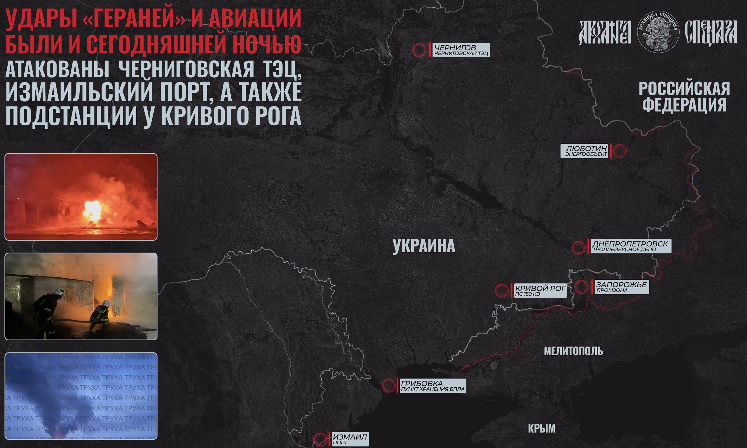 МО РФ выложило кадры удара по подстанциям 150 кВ в районе Кривого Рога. Причем фиксация попаданий была с другого разведдрона, висевшего в районе удара БпЛА.