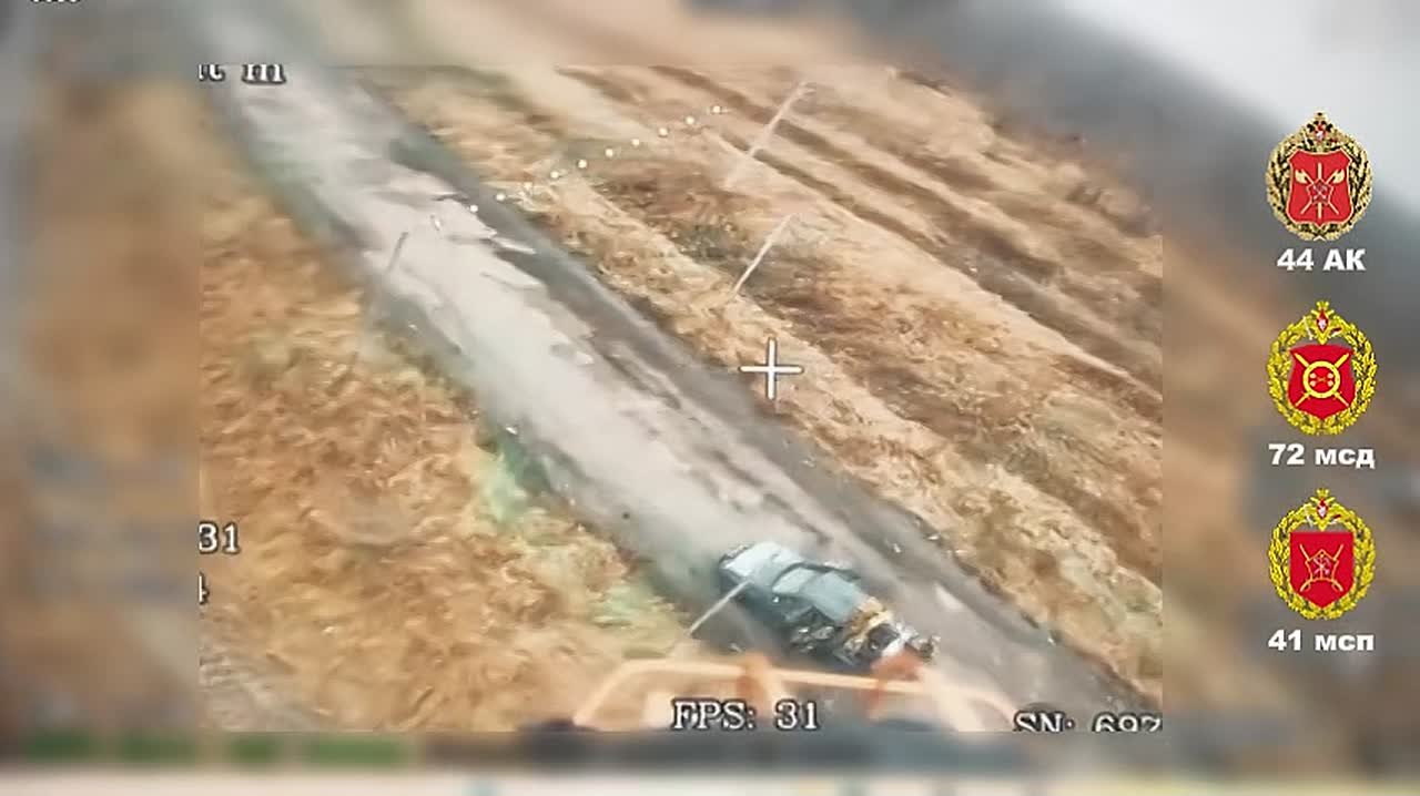 Расчёт БпЛА 41 мсп 72 мсд 44 Армейского корпуса в Сумской области обнаружил и уничтожил бандеромобиль, на котором перемещались украинские боевики. Цель была своевременно выявлена на маршруте и поражена точным ударом. В результате транспорт выведен из строя, попытка переброски личного состава сорвана.