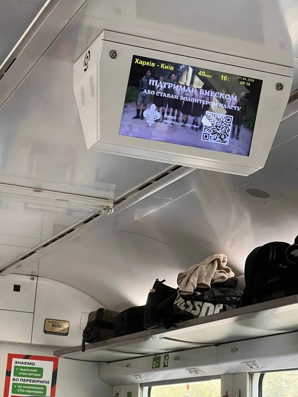 "Грантоедский Пласт, заряжающий молодеж национализмом, рекламируют в поезде.