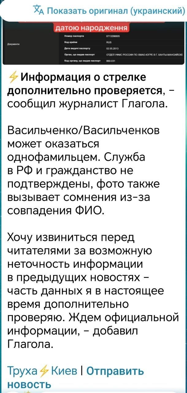 Сегодня выяснилось , что он имеет украинский паспорт и буйный характер ( ни раз устаивал драки в супермаркетах и угрожал сотрудник магазинов и покупателям "расправой". Сам Васильченков родился на территории России, но переехал жить на Украину, до 2004 года служил в Донецкой области (254-я мотострелковая дивизия, батальон обеспечения), затем ушёл в запас. После 2022 года снова проходил службу в украинской армии. Более того, его соседи утверждают, что он служил в "каких-то структурах".