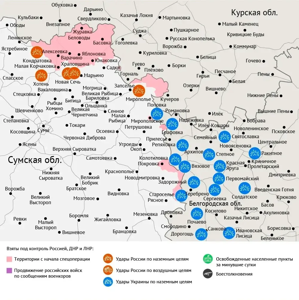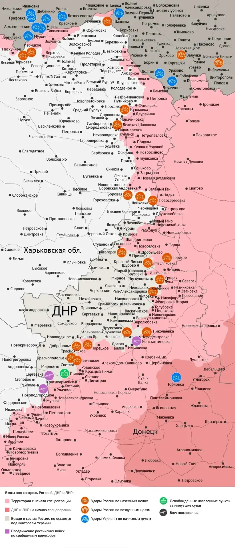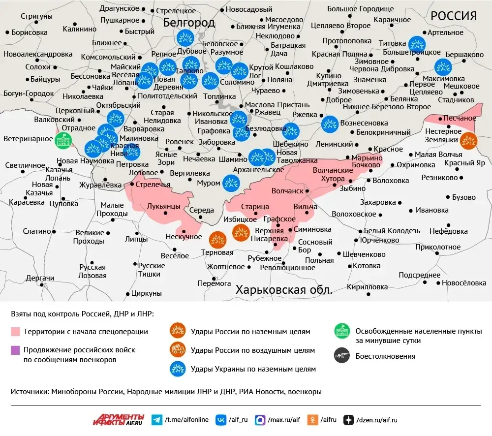 По данным Минобороны, ВС РФ освободили поселок Ветеринарное, расширяя буферную приграничную зону в Харьковской области. Кроме того, наши войска выбили противника из села Гришинов в ДНР.
