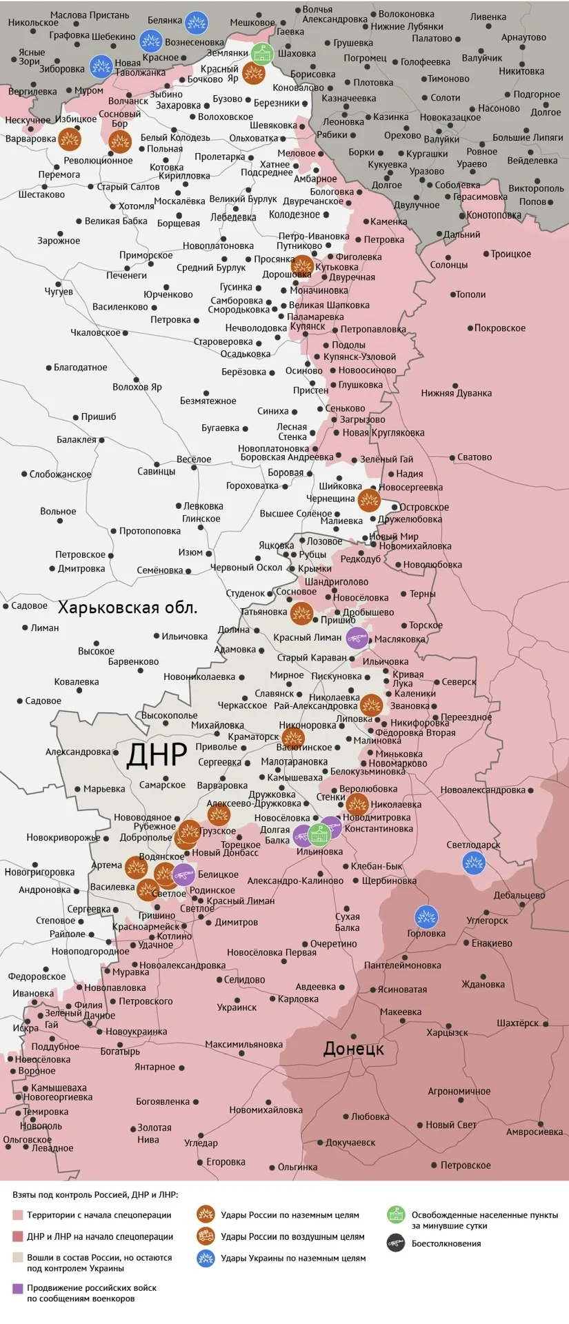 По данным Минобороны, ВС РФ 28 апреля освободили село Ильиновка в ДНР, постепенно замыкая кольцо вокруг Константиновки, штурм которой продолжается. Кроме того, наши бойцы окончательно выбили врага из населенного пункта Землянки в Харьковской области.