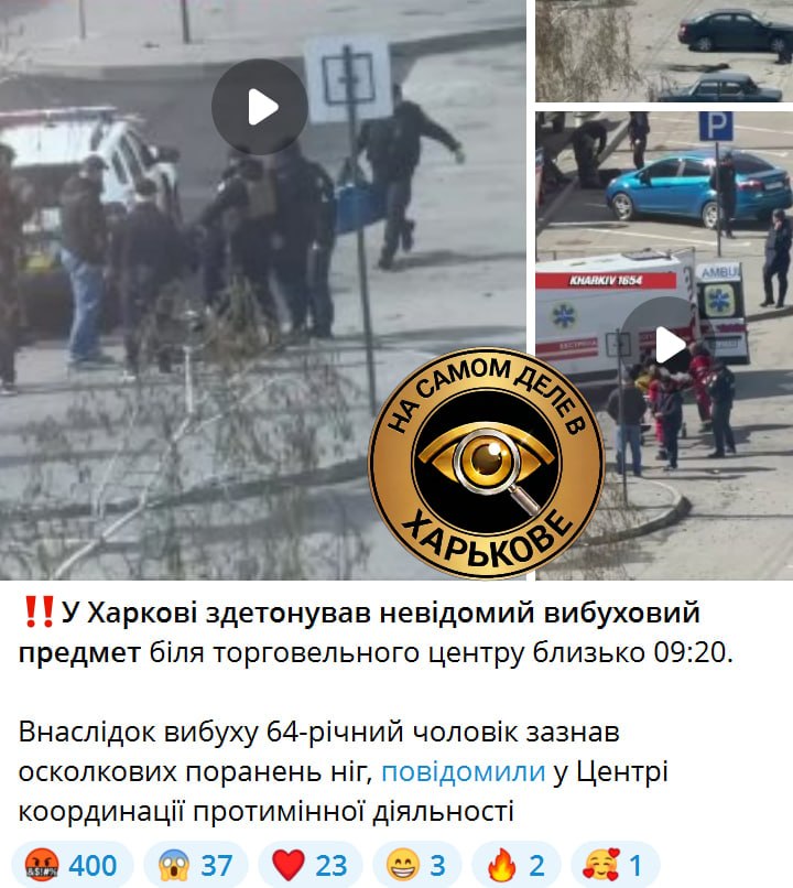 "Около 09: 20 сдетонировал неизвестный взрывной предмет возле торгового центра. В результате взрыва пострадал 64-летний мужчина. Он получил осколочные ранения нижних конечностей", — сообщил Центр координации противоминной деятельности